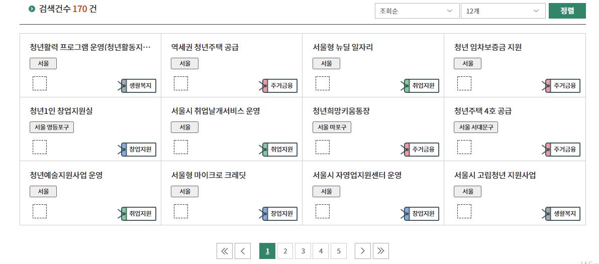 이렇게 검색을 하면 원하는 선택에 맞춰다양한 정책들이 나옵니다.
