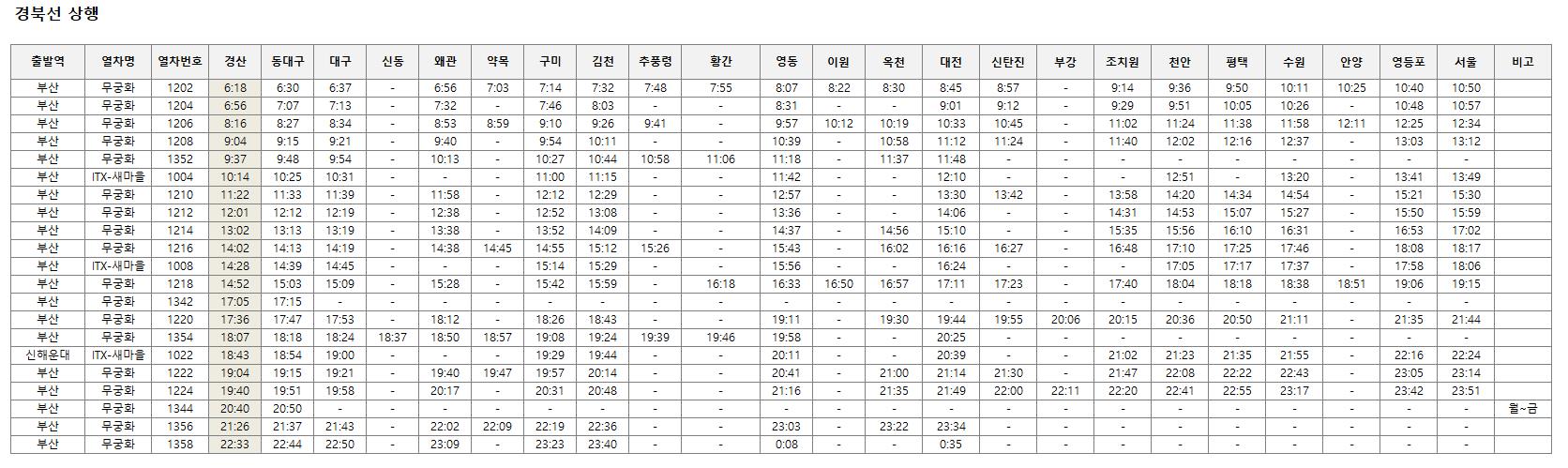 - 경산역 열차 경부선 시간표(무궁화호,새마을호)