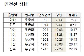 3. 경산역 열차 경전선 시간표(무궁화호,새마을호)