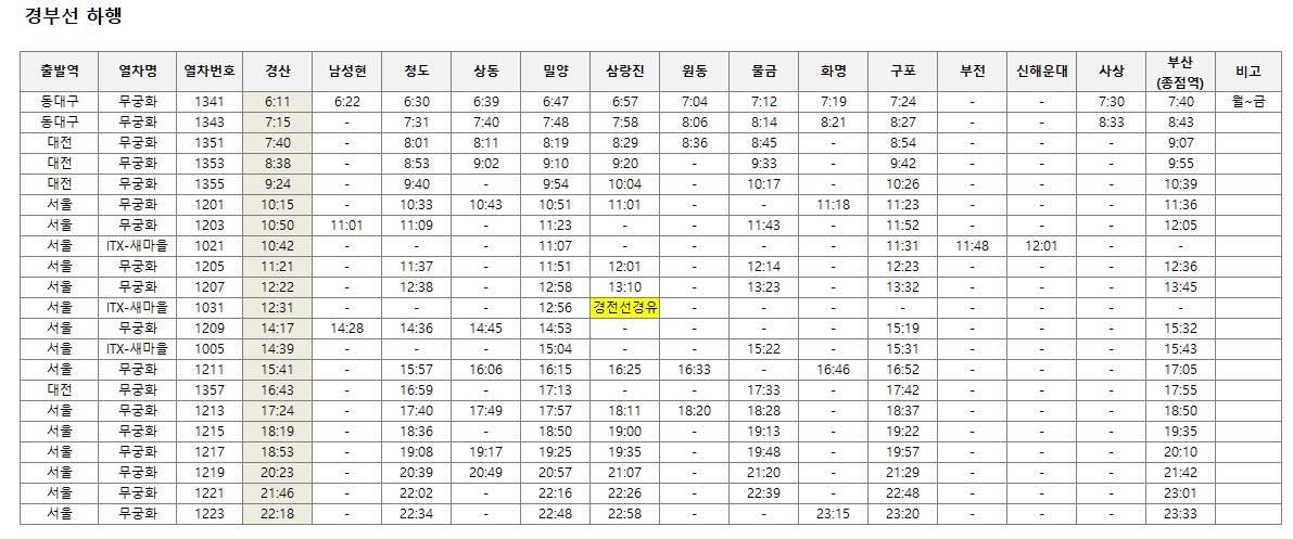 - 경산역 열차 경전선 시간표(무궁화호,새마을호)