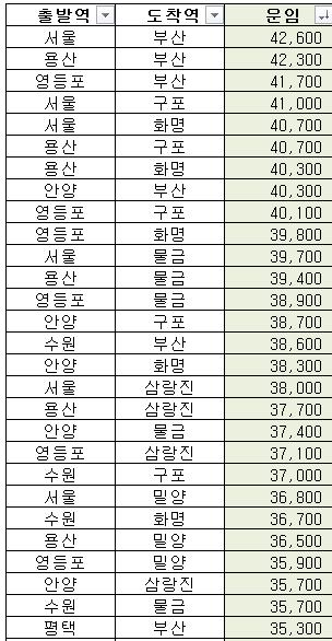 서울에서 부산,구포,화명까지 가려면 약 4만원정도가 소요됩니다.