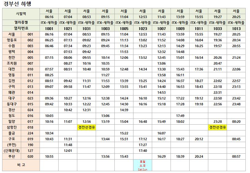 | 경산역 기차시간표(열차),운임요금_KTX,무궁화호,새마을호(경부선,경전선) (0) | 2021.10.27 |