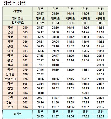 익산역에서 출발해 수원역,영등포역,용산역까지 운행합니다.