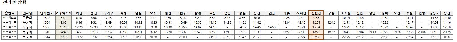 4. 신탄진역 전라선 기차시간표